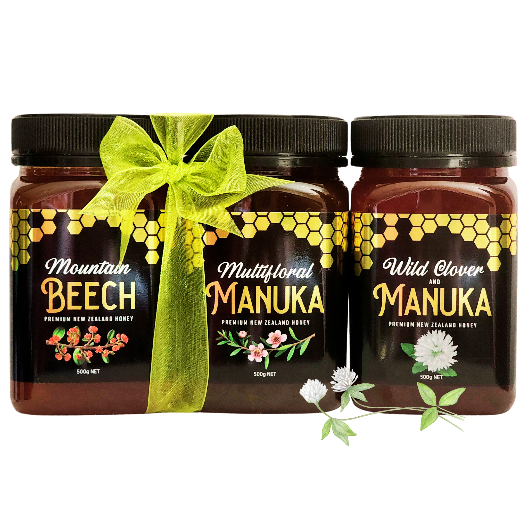 Discover the rich diversity of New Zealand’s alpine flora in this luxurious Wild Clover & Manuka Honey Collection. This delicious trio features three of our most beloved raw honeys—each cold-extracted, unheated, untreated, and no sugar fed to bees, ensuring maximum natural goodness in every spoonful.